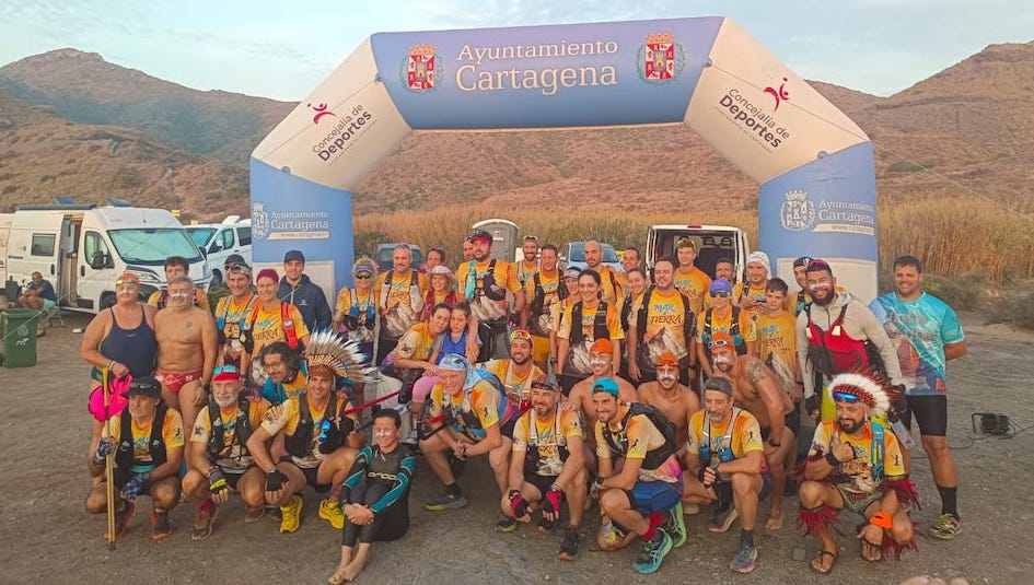 Éxito del III Reto Solidario Mar y Tierra a beneficio de la Fundación Tiovivo para dar visibilidad a la discapacidad y la lucha por la 'no exclusión'.En la aventura celebrada el pasado sábado, Joaquín Susmozas con su hija Julia, que padece una enfermedad rara, y resto de integrantes del Sector Tierra, recorrieron 21 kilómetros con 650 de desnivel positivo entre Cala Reona y Portmán.