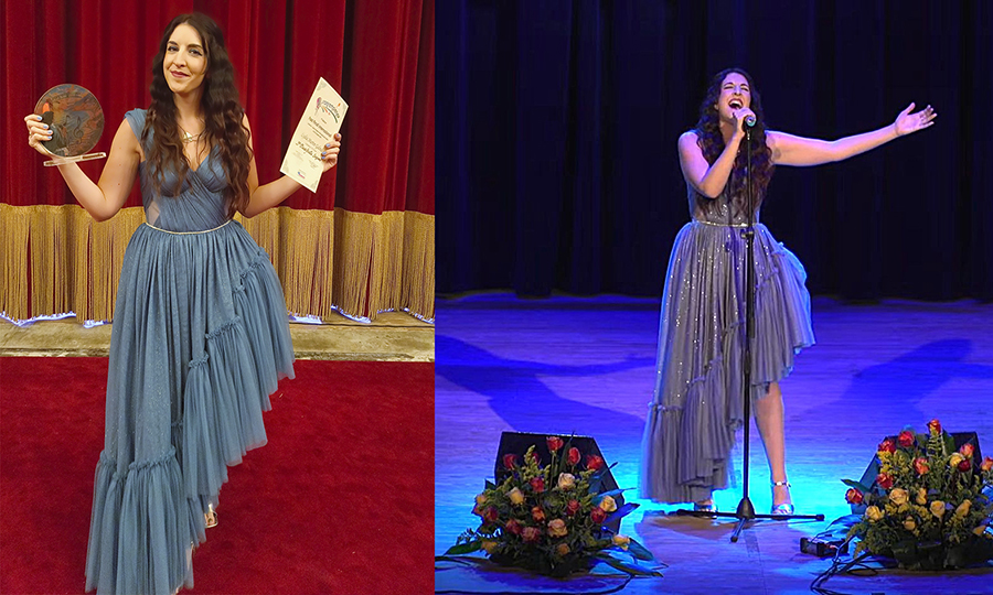 2. La cantante y compositora cartagenera Lydia Martín, quienes fuertes vínculos con La Unión (su abuela es de Portmán), ha vuelto del concurso San Remo Senior con un trofeo que confirma su potencial como compositora y vocalista y que le ha llevado a conseguir el tercer premio en la categoría de cantautores de la novena edición del concurso. Ha sido con su tema ‘Huellas’, una canción candidata este 2025 a participar en el 'Benidorm Fest'. Fueron 476 las propuestas que este año llegaron hasta la organización del 'Comune di San Remo', de las que se seleccionaron 33 de 15 países. Lydia, quien actuó con un corsé rojo, superó las semifinales y entró entre los diez elegidos de la final, siendo la única española que lo consiguió. El jurado estuvo compuesto por prestigiosos compositores y cantantes italianos, entre ellos Wilma Goich como madrina del evento. La letra de ‘Huellas’ está cargada de metáforas y simbolismos. Por eso, salió al escenario con una creación de la colección ‘Magia del Cielo’ de Elena Koshurnikova, diseñadora afincada desde hace más de 20 años en Águilas. En un color azul, la artista quiso hacer un guiño al Mediterráneo que baña Portmán y Cartagena, de donde vienen sus raíces familiares y donde nació.