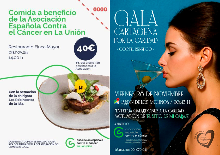 La comida a benefició de la AECC de La Unón será el domingo 9 de noviembre a las 14 horas en el restaurante Finca Mayor. El precio es de 40 euros de los que 8 irán a la asociación.