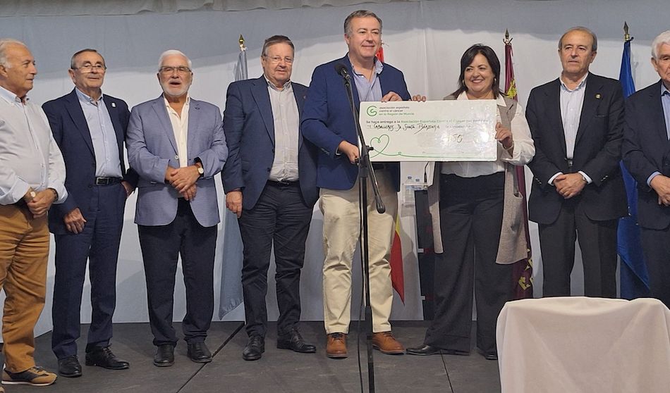 La asociación cultural 'Orden de los caballeros de Santa Bárbara' acudió a la comida a beneficio de la Asociación Española contra el Cáncer de La Unión, donde llevó a cabo la entrega de donativo de 250 euros para ayudar en la investigación contra esta enfermedad.