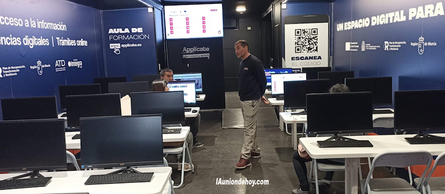 La formación itinerante gratuita ‘Sube, conecta y aprende’ de Fundación Integra, que enseña a los vecinos a adquirir competencias digitales útiles para el día a día, ha estado cuatro veces en la ciudad de La Unión (hoy es el último día en que está en la plaza Arquitectos Cerdán y Beltrí), pero además de las rutas que lleva a cabo por las principales ciudades de los 45 municipios regionales, cualquier asociación puede solicitarlo con un mínimo de 15 personas que quiera aprender el uso de las tecnologías.