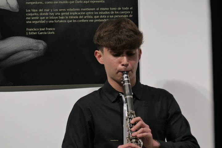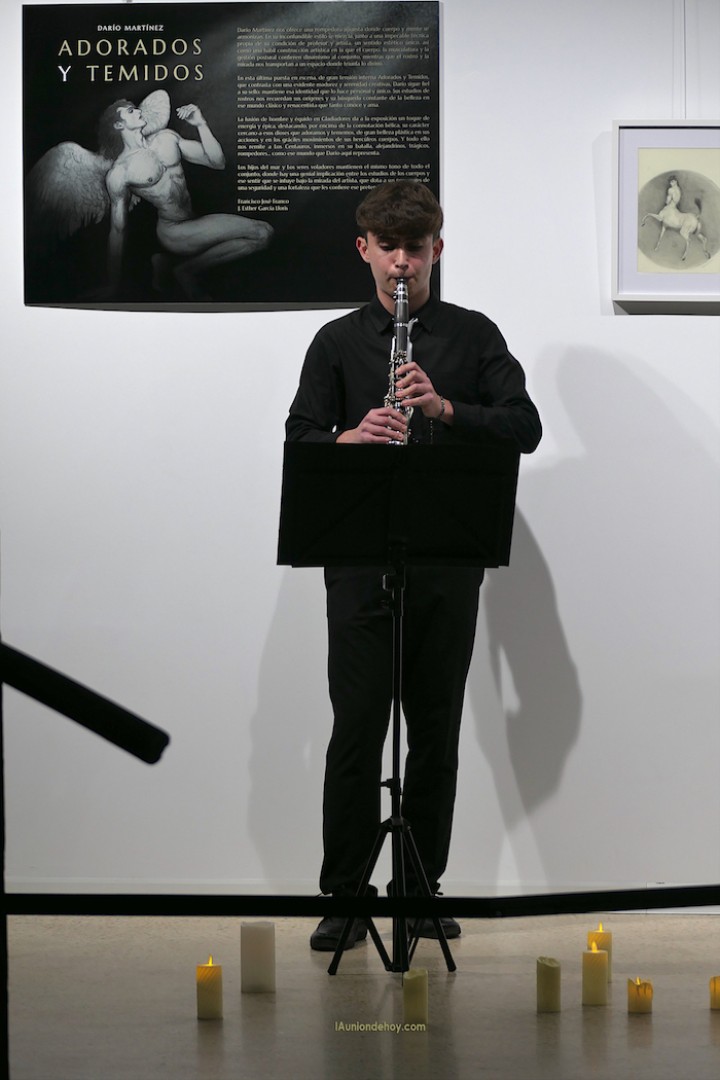 El punto de partida fue el silencio para escuchar a Adrian Milán, un nuevo artista nacido en esta tierra hace 14 años y que deleitó con su clarinete en un espacio ubicado ante los cuadros y que marcaban velas encendidas en el suelo.