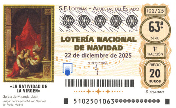 Respecto al billete de este año, indicar que recoge una pintura de La Natividad de la Virgen, del pintor madrileño Juan García de Miranda (1677-1749). Se trata de un óleo sobre lienzo depositado en el Museo de Salamanca, que representa el nacimiento de la Virgen María.