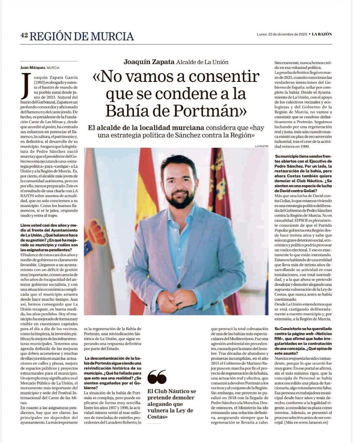 3. La Razón publica una entrevista de página completa con el alcalde de La Unión