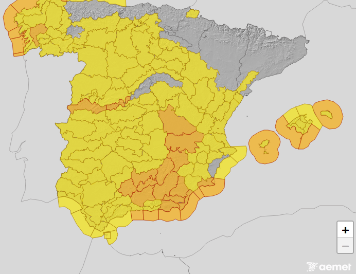 El aviso naranjo de AEMET abarca a jueves, viernes y sábado.