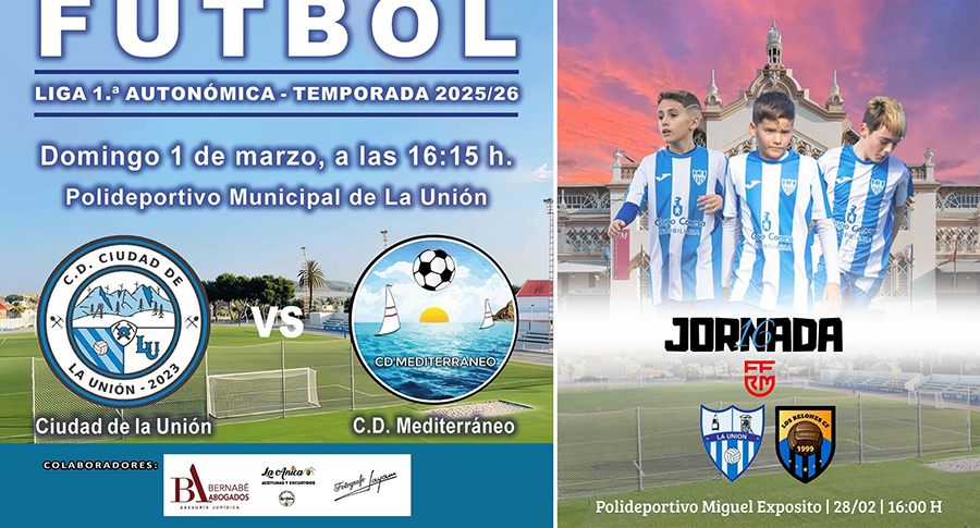 Primera autonómica: CD Ciudad de La Unión-CD Mediterráneo, domingo a las 16.15 horas