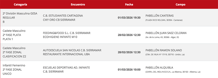 - Cieza EB-CB Sierramar, sábado a las 10 horas en el pabellón Juan José Angosto