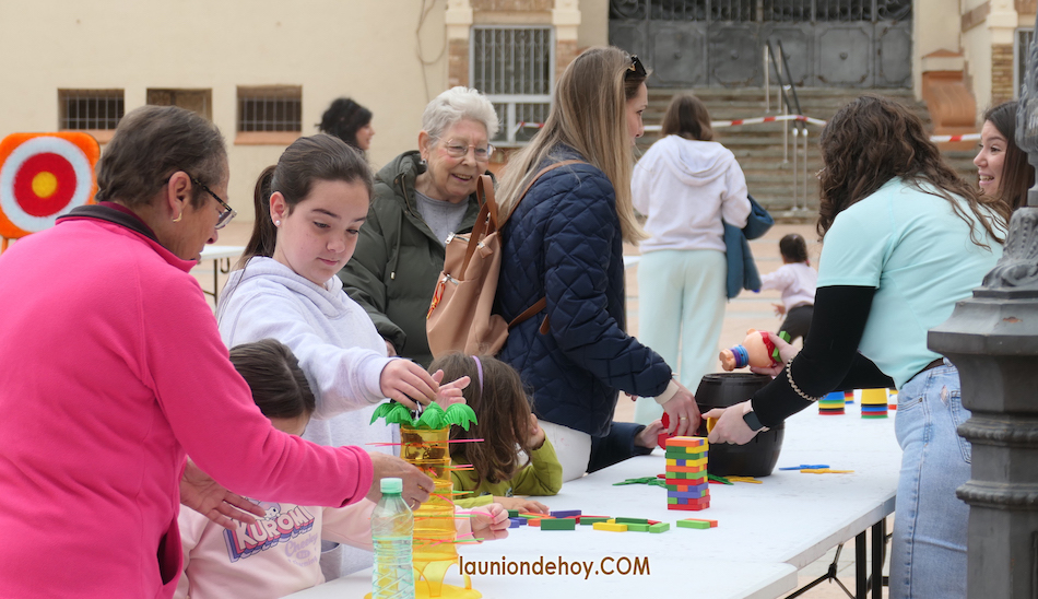 La 'Feria de juegos familiar', que en 2025 tuvo lugar en la plaza de los Arquitectos Cerdán y Beltrí, se ha trasladado en esta edición al epicentro del casco antiguo de la ciudad minera, sufriendo durante algunos momentos la inesperada (no figuraba en las previsiones climáticas) presencia de chispeos de lluvia. Sin embargo, la participación y diversión estuvo bastante bien, observándose bastantes grupos familiares en los que se implicaban tanto mayores como pequeños en los juegos deportivos, en los de puntería, en los de mesa o en los populares, además de otras actividades, como talleres y pintada en muro, además de que los que quería podían tener una fotografía con el fondo de tesoros del patrimonio de La Unión. Con financiación estatal y autonómica, la jornada se llevó a cabo a través del Ayuntamiento de La Unión, siendo la asociacion sociocultural 'Cachivache' la encargada de los juegos. Acompañaron el desarrollo de esta iniciativa la edil Damiana García y efectivos de Protección Civil de La Unión.