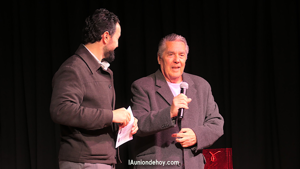 José Joaquín Hernández 'viajó a pasado' para recordar la noche inaugural del 11 de junio de 2001, en el Mercado Antiguo. "Fue la peor noche de mi vidal, pues cuando iba a empezar la función no había nadie, ni los políticos... ¡Vaya un fracaso!, me dije, pero, de pronto, entró una persona y luego otra y luego otra y así hasta que se llenó el aforo. Fue grandioso", expuso a los presentes, para a continuación regalar un vídeo de aquella primera edición al alcalde con destino al Archivo Municipal de La Unión.