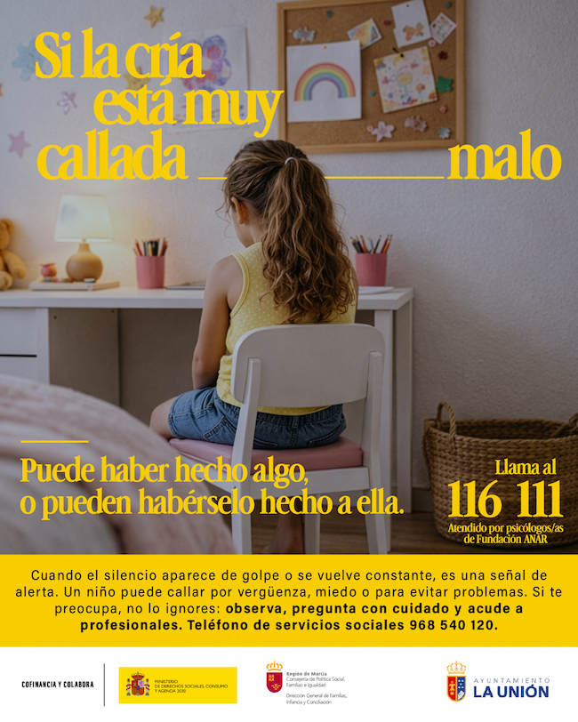 El Ayuntamiento de La Unión ha puesto en marcha una nueva campaña municipal de sensibilización frente al maltrato infantil, una iniciativa orientada a ayudar a la ciudadanía a identificar posibles señales de alerta en niños y niñas y a actuar de forma responsable, prudente y segura ante cualquier sospecha.