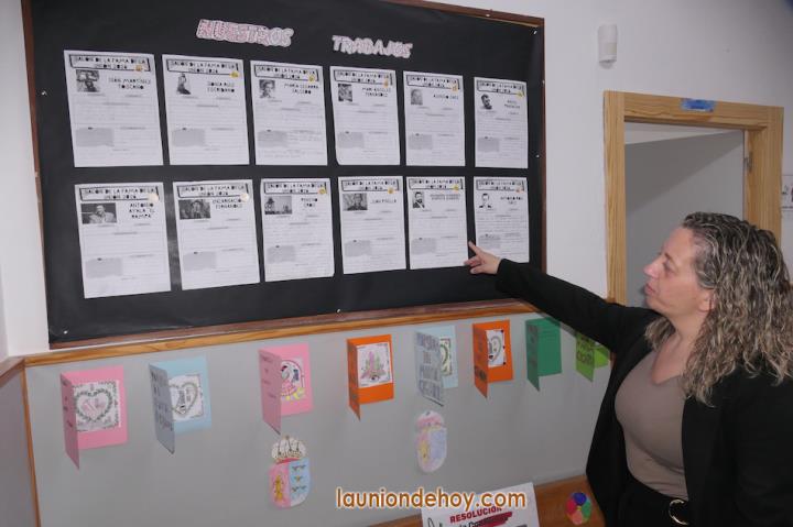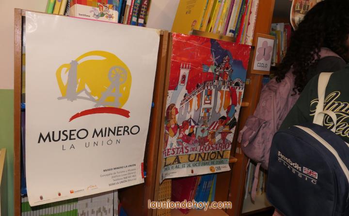 Después de avanzar mientras observamos una pared repleta de 'cuentos colaborativos' ("Son cuentos inventados relacionados con La Unión", apunta Mari Lorente), llegamos a la biblioteca, que para esta semana cultural de la villa se ha convertido en museo, siendo su principal artífice Pedro Muñoz, del equipo de profesores, quien ha recopilado numerosos objetos de un tiempo pasado, muchos totalmente desconocidos para los alumnos, a los que suman carteles de las Fiestas del Rosario y descubrir las posibilidades que ofrecía el esparto.