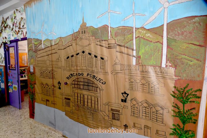 También se puede ver un dibujo mural sobre la maltratada bahía de Portmán y paneles con un '¿Sabías que...?, recordando, por ejemplo, que la Casa del Piñón fue un hotel de lujo para 'los jefes de las minas'. Otra gran pintura muestra la fachada principal del Mercado Público.