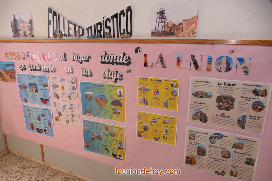 Pasamos al capítulo turístico, 'donde La Unión se convierte en un viaje', cartel con fotos y datos sobre los atractivos e históricos inmuebles de La Unión, Portmán y Roche, muchos de ellos modernistas, a los que se suman las iglesias, Huerto Pío, museo etnográfico, monumento al minero...