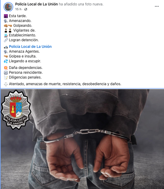 4. Retenido por los vigilantes de un establecimiento quien estaba amenazando y dando golpes, que después insultó, escupió y golpeó a agentes de la Policía Local