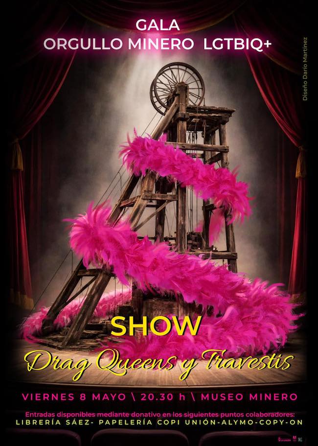 El salón de actos del Museo Minero acogerá un espectáculo con diversidad, respeto y celebración, en el que se desvelará el cartel del 'Día del Orgullo', obra de la artista Toñi Esther, y se podrá disfrutar de un show de 'Drag Queens' y de travestis.