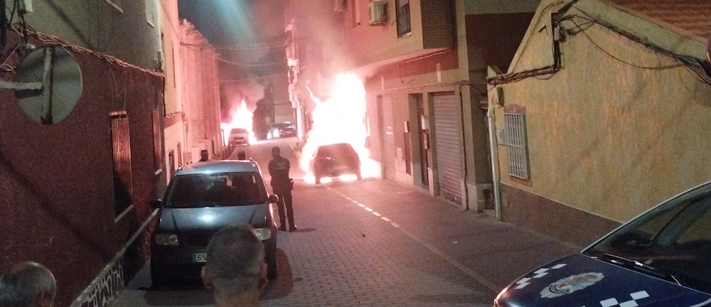 El suceso ha tenido lugar esta pasada madrugada cerca de la iglesia del Rosario, en concreto, en la calle Clavel, cerca de las confluencias con las vías de Trovero Marín y Trovero Castillo, por causas que se desconocen, aunque, en base a la distancia entre dos de los vehículos incendiados y un tercero se baraja que han podido ser intencionados.