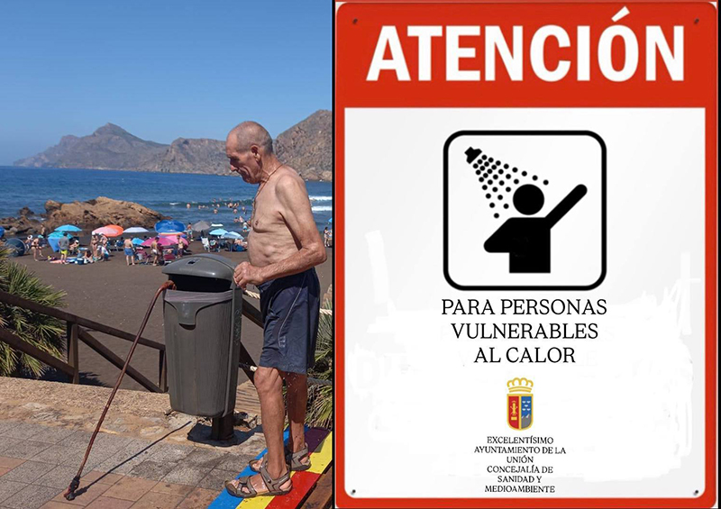 Protección Civil de La Unión expone que siguen teniendo "problemas para hacer entender" que este servicio instalado en el paseo de la playa "tiene una finalidad preventiva", y que las personas no vulnerables disponen de los lavapiés en otros puntos del arenal.