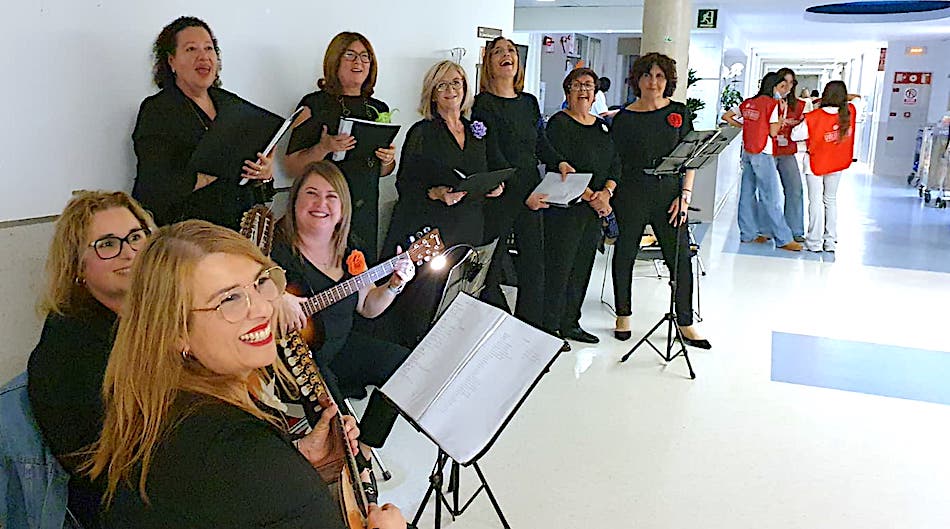 El grupo coral de La Unión estuvo hace unas fechas cantando en la unidad de cuidados paliativos del hospital del Rosell y ayer tarde llevaron sus voces a pacientes de una de las plantas del Santa Lucía.