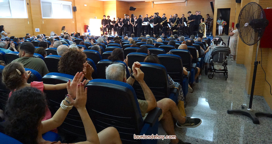 Agrupación Musical La Unión celebró el fin de curso de su escuela con una brillante actuación en un centro cultural Asensio Sáez con el aire acondicionado estropeado.