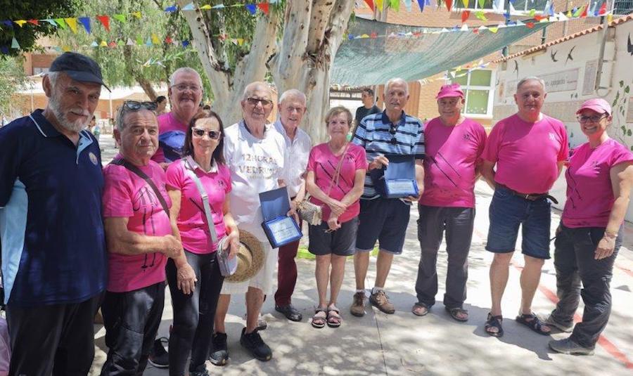 El colectivo senderista unionense llevó a cabo una ruta cercana por la serranía de La Unión visitando el túnel de Isabel II y El Chorrillo, para después dirigirse al colegio Nuestra Señora de Carmen, donde se celebraban las '12 horas de Vedruna'. El grupo aprovechó la ocasión para distinguir con sendas placas a Paco Munuera y a Carlos Gómez por su labor a lo largo de muchos años organizando este popular y deportivo evento anual.