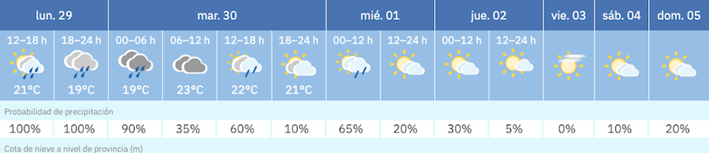 La Agencia Estatal de Meteorología ha añadido hoy un aviso 'naranja' al emitido ayer 'amarillo' por lluvia y tormenta para la comarca del Campo de Cartagena durante hoy y mañana. Adjuntamos cuadro que ha elaborado sobre porcentaje de probabilidad de lluvia.