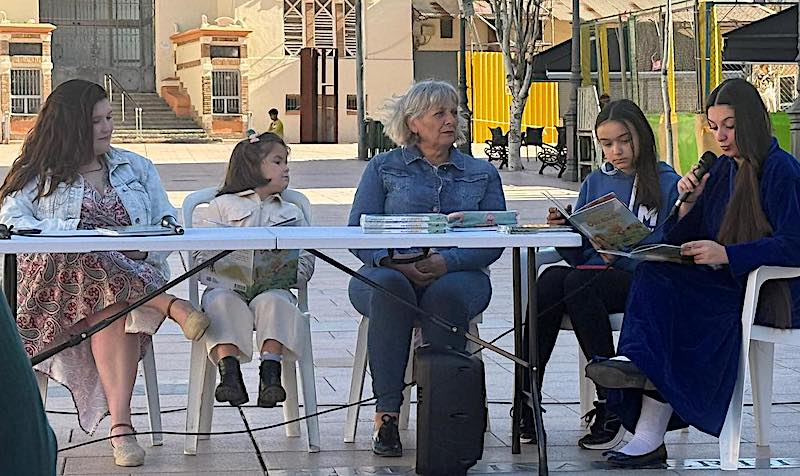 El protagonista del cuento escrito por Concha Lavella tiene como protagonista a un chaval a quien sus abuelos han contado que los niños trabajaron en las minas de La Unión. Ayer, en formato cuentacuento, se ofreció en la plaza de Joaquín Costa durante el 'Día del libro', en un acto al aire libre enriquecido por la voz flamenca de Sebas Andreu.