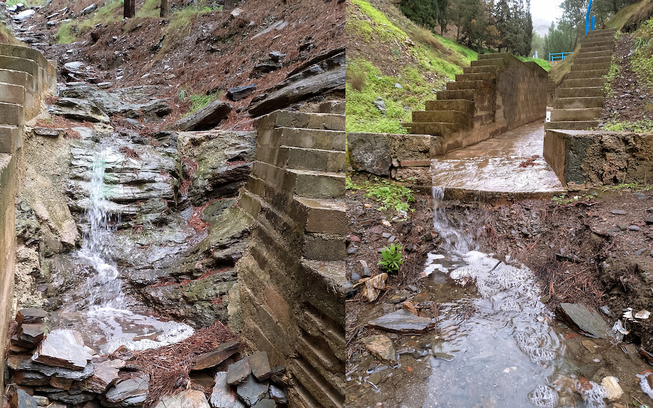 Las lluvias que estamos teniendo desde el pasado sábado han permitido ver nuevamente el agua circular por el emblemático paraje unionense, como se observa en las fotos remitidas por Nicomedes García, voluntario del grupo que trabajar por el buen estado del lugar.