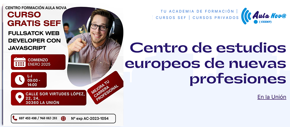 Desde Aula Nova, te presentamos una acción formativa ideal para comenzar el 2025 con el pie derecho. Esta formación te permitirá mejorar tus habilidades, crecer profesionalmente y abrirte a nuevas oportunidades laborales. Incluida en el Plan ReActiva del SEF (Servicio de Empleo y Formación), está dirigida tanto a personas desempleadas como a trabajadores que deseen ampliar sus competencias en el área de 'Informática y Comunicaciones'. Se impartirá en el colegio Sabina Mora.