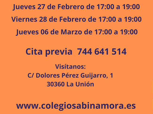 La cooperativa de enseñanza bilingüe concertada inicia hoy sus jornadas de puertas abiertas de sus instalaciones de la calle Dolores Pérez Guijarro, en El Garbanzal. Esta tarde y mañana, al igual que el jueves 6 de marzo, el horario es de 17 a 19 horas. Los asistentes también podrán conocer la propuesta educativa del centro docente.