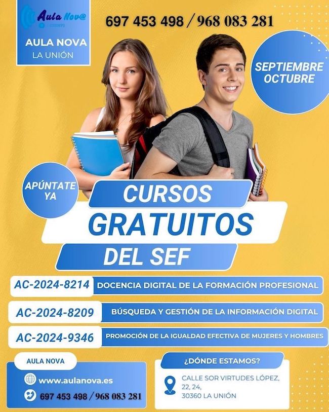 ¡Nuevos cursos gratuitos en Aula Nova – La Unión!