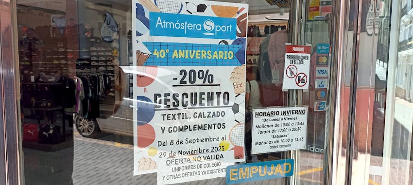El establecimiento de la calle Bailén de La Unión inició el 8 de septiembre la celebración de su cuarenta cumpleaños con un descuento del 20% en los productos de textil, calzado y complementos, promoción que mantiene hasta el 29 de noviembre.