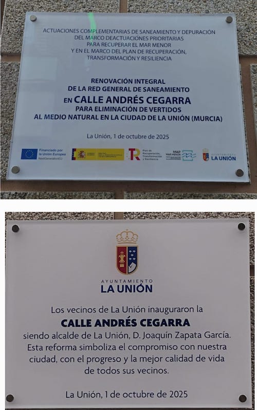 El Partido Socialista de La Unión celebra que el Ministerio para la Transición Ecológica y el Reto Demográfico (Miteco) haya dado la razón al PSOE tras la denuncia presentada el pasado 23 de octubre por la concejala socialista Elena José Lozano Bleda en relación con la placa instalada por el ayuntamiento en las obras de saneamiento de la calle Andrés Cegarra.