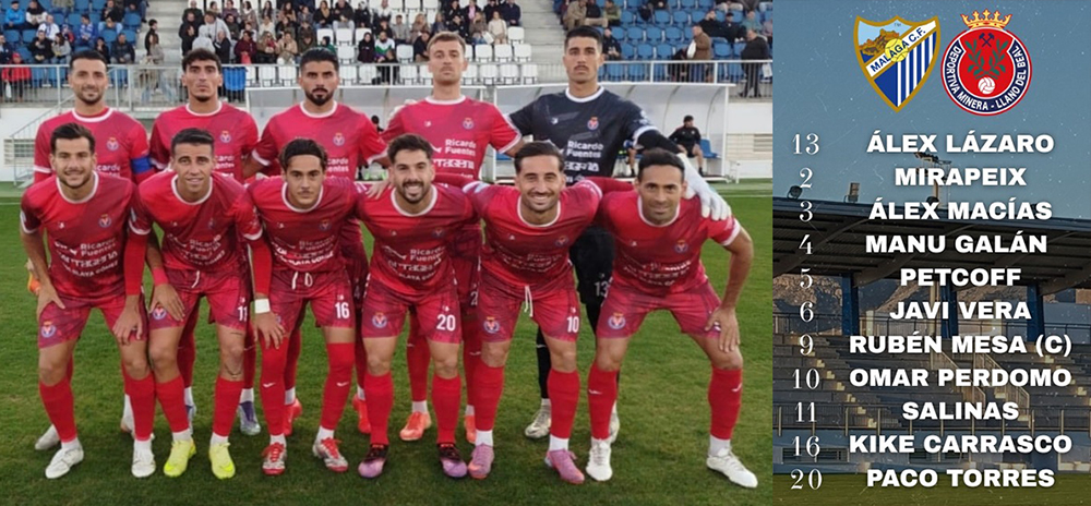 Partido de la jornada 14 del grupo cuarto de Segunda RFEF de fútbol disputado en la ciudad deportiva del Málaga CF. El colegiado Antonio Pozo mostró 2 cartulinas amarillas a los malacitanos por 7 a los mineros. El próximo partido de la Deportiva Minera será el domingo 14 de diciembre a las 12 horas frente al CD Extremadura en el coliseo Ángel Celdrán.