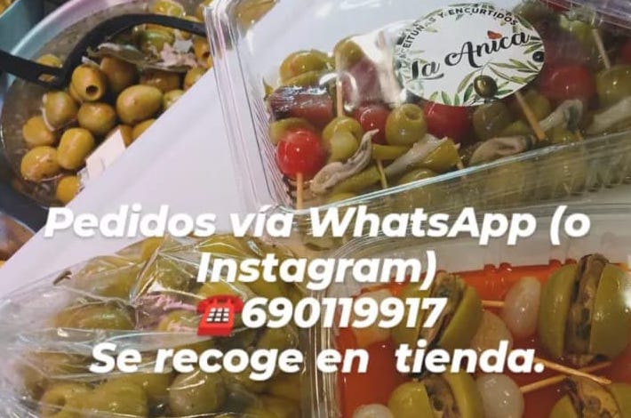 Basta con enviar un WhatsApp al número 690 119 917 o efectuar el encargo a través de Instagram (www.instagram.com/laanica1/). Luego lo tendrás preparado en la tienda para recogerlo en el establecimiento de aceitunas y encurtidos, entre otros productos, ubicado en el número 127 de la calle Mayor de La Unión.