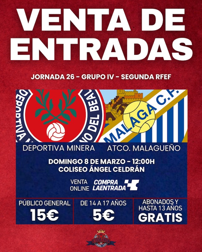 La Deportiva Minera está en el grupo de equipos que pelean por luchar hasta el final por el ascenso, pero, por aquello del promedio ('average' en inglés) ocupa la sexta plaza, con lo que quedaría fuera de ese anhelado vagón si la liga acabase hoy, pese a llevar los mismos puntos que el quinto y sólo tres menos que el segundo de la tabla. Por ello, recibir al filial del Málaga no da licencia a 'bajar la guardia', sino que hay que asegurar estos tres puntos para seguir con plenas opciones en esos objetivos.