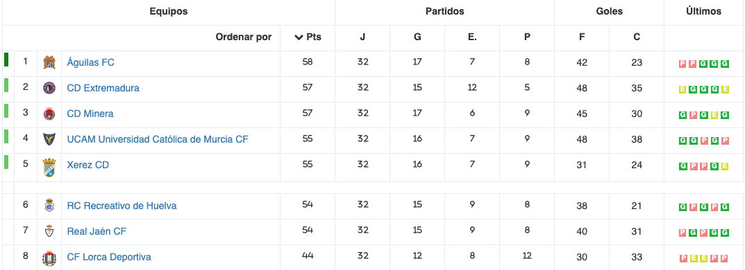 Quedan tres jornadas para acabar la liga y viendo la parte alta de la clasificación, donde se marcan los puestos de ascenso directo y de fase de ascenso, se aprecia lo importante que es ganar en casa del Almería B, que es penúltimo y ya está descendido.