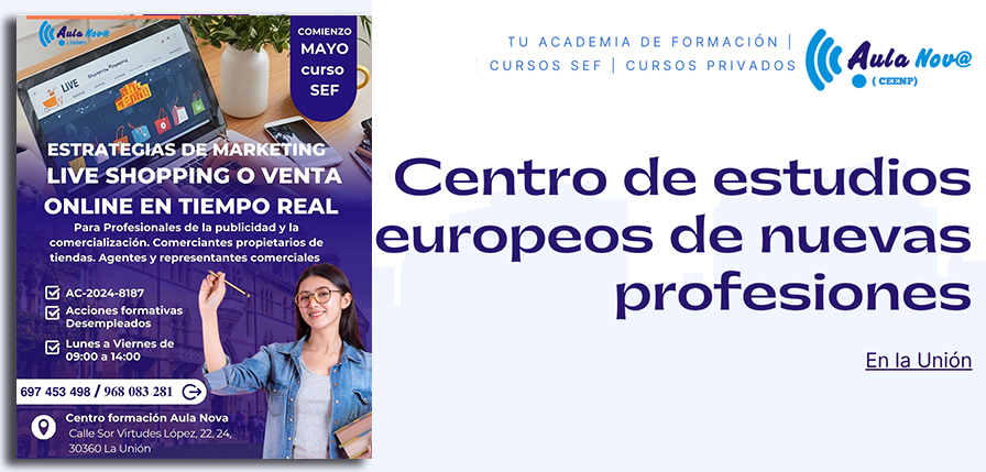 Desde Aula Nova te informamos de una acción formativa que puede ser clave en tu desarrollo. Forma parte de la programación del Servicio de Empleo y Formación (SEF) dirigida a personas desempleadas. ¡Inscríbete ya y da un impulso a tu perfil profesional!