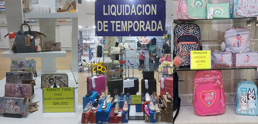 El establecimiento de La Unión aplica estos días un descuento del 50% en calzado, bolsos, maletas y muchos más artículos que puedes adquirir a mitad de precio mientras queden existencias. Además, también hemos puesto una estantería especial de mochilas escolares con una bajada de precios del 40%. ¡Aprovéchate!