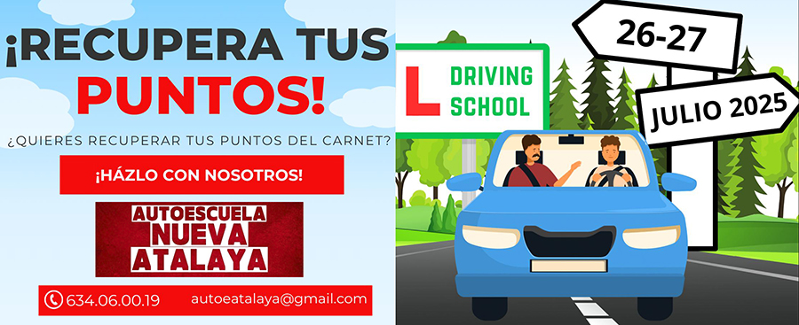 Autoescuela Nueva Atalaya, con sede en la calle Mayor de La Unión, te ayuda a recuperar los puntos del carné de conducir.