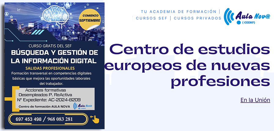 ¡Esta formación gratuita puede darte el impulso que necesitas! Es el curso 'Búsqueda y gestión de la información digital' que te ofrece Aula Nova en La Unión.