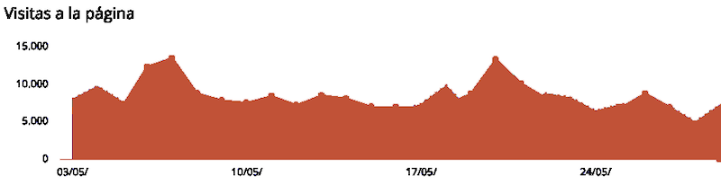 La media diaria de internautas que han entrado a la página web del diario desde ordenadores diferentes ha sido de 8.324, una cifra alcanzada ese mes en los más de 13 años de andadura de este medio informativo. Destacan dos momentos. El primero está motivado por las informaciones en torno a los partidos de la fase de ascenso de La Unión Atlético, siendo el artículo más visitado el relacionado con el concurso de agrupaciones de Semana Santa, que organiza este diario. El segundo fue generado por las manifestaciones en Madrid por la bahía de Portmán, con la noticia de la bolsita con residuos mineros entregada por Bernabé a la ministra como la más 'pinchada'.