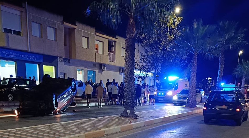 La avenida Sierra Minera de La Unión registró, sobre las nueve de la noche de ayer, un accidente de tráfico entre dos vehículos. En uno de ellos iba una pareja residente en la ciudad y en el otro, que acabó volcado sobre el asfalto, viajaban tres jóvenes, al parecer, de Cartagena.