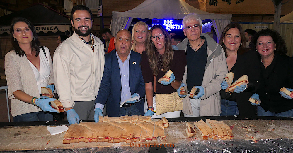 Tras ls lluvias de jueves y viernes, ayer se reanudaron las fiestas de La Unión con la reapertura del recinto festero, siendo el primer acto nocturno el reparto gratuito de mil quinientas porciones de un gigantesco bocadillo bien cargado de condumio.