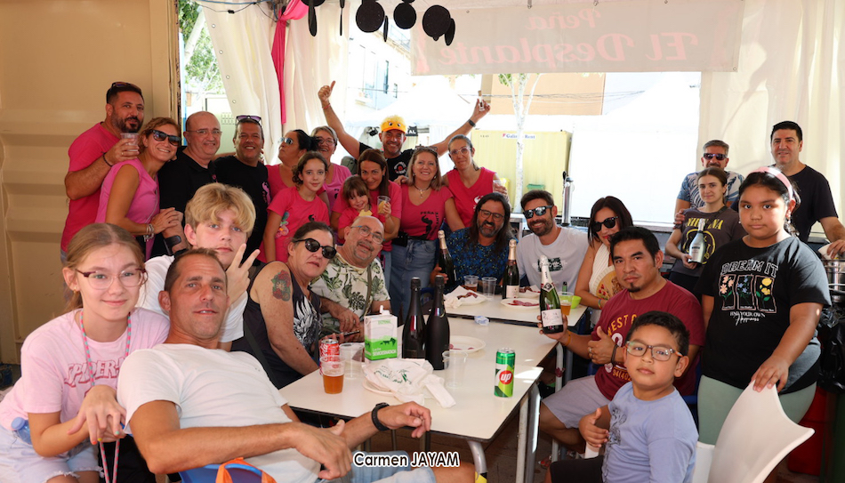 Tras la animada noche de chupinazo, pregón y música, La Unión vivió su primera mañana de las fiestas del Rosario entre tradición, música y sabor en torno a la plaza de Joaquínn Costa, donde están establecidas las peñas,como 'El Desplante', al que se observa en la foto superior.