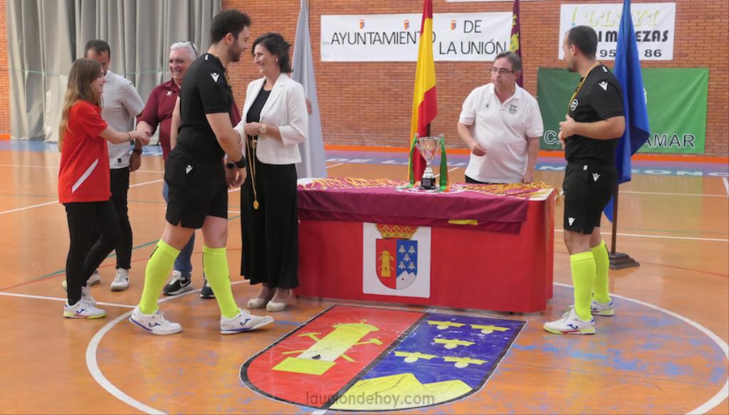Las preseas fueron impuestas por Aurora Ródenas, edil de Deportes del Ayuntamiento de La Unión; Juan Carlos Olmos, directivo de la Federación de Fútbol de la Región de Murcia; Sergio Zapata, presidente del CD Vedruna; y la hermana Carmen Peralta, cuya aparición en la pista fue otra de las grandes ovaciones de la tarde.