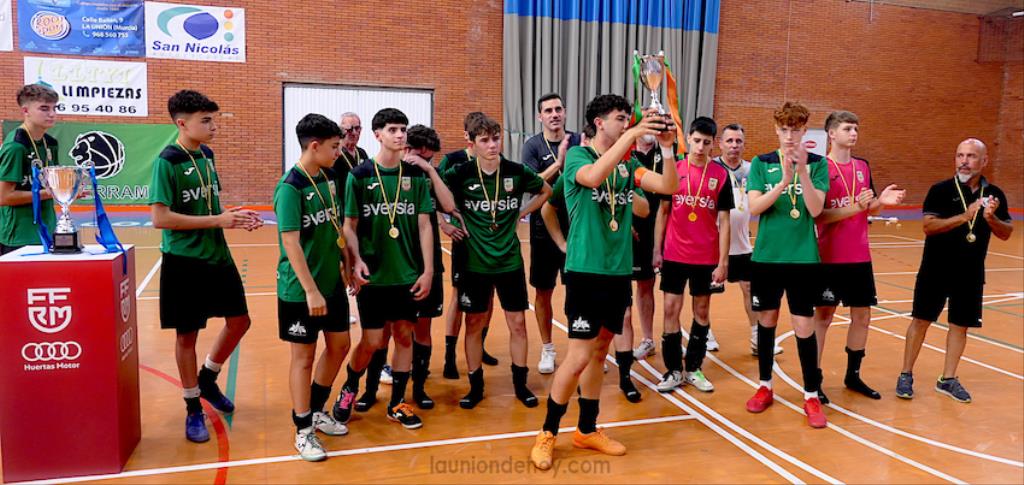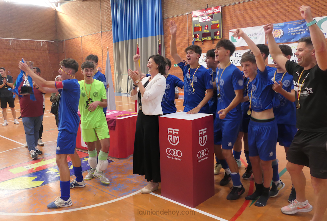 Pabellón Ramón Solano de La Unión. Más de cuatrocientos espectadores. Final del torneo de copa de categoría cadete de la competición organizada por la Federación de Fútbol de la Región de Murcia.