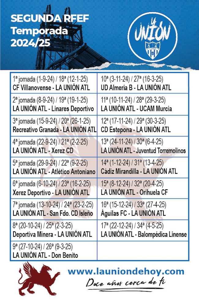 El calendario 2024/25 lleva todos los partidos y fechas de La Unión Atlético en su segunda temporada en Segunda RFEF.