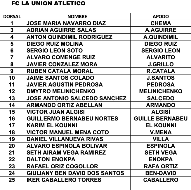 ¿Quiéres saber los dorsales de la nueva plantilla de La Unión Atlético 24/25?