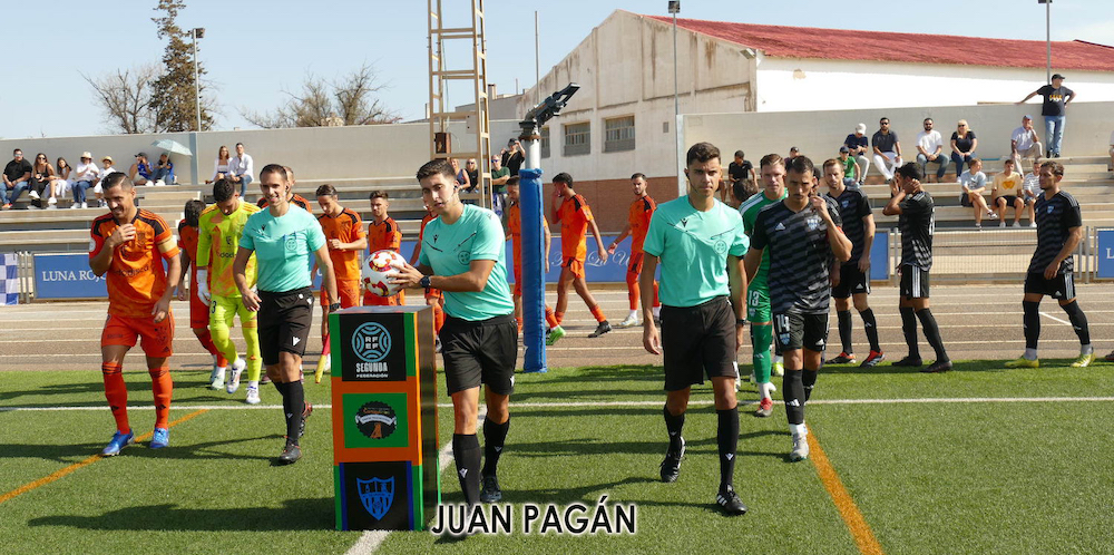✍️ Salida protocolaria. Militar en Segunda RFEF se nota cada vez más también por la salida al campo en base a u protocolo fijado y la recogida del balón por parte del colegiado en la tarima instalada antes de pisar el rectángulo de juego.