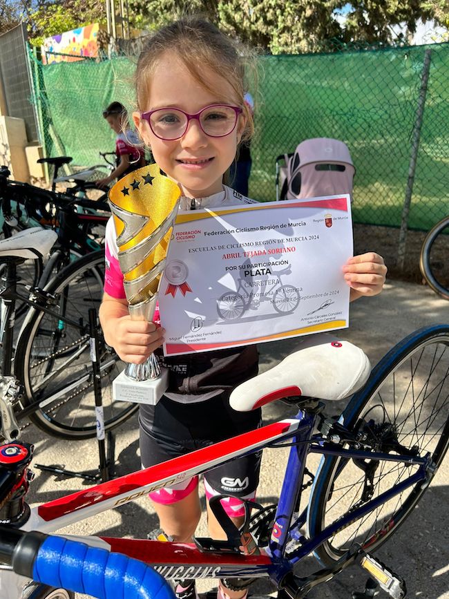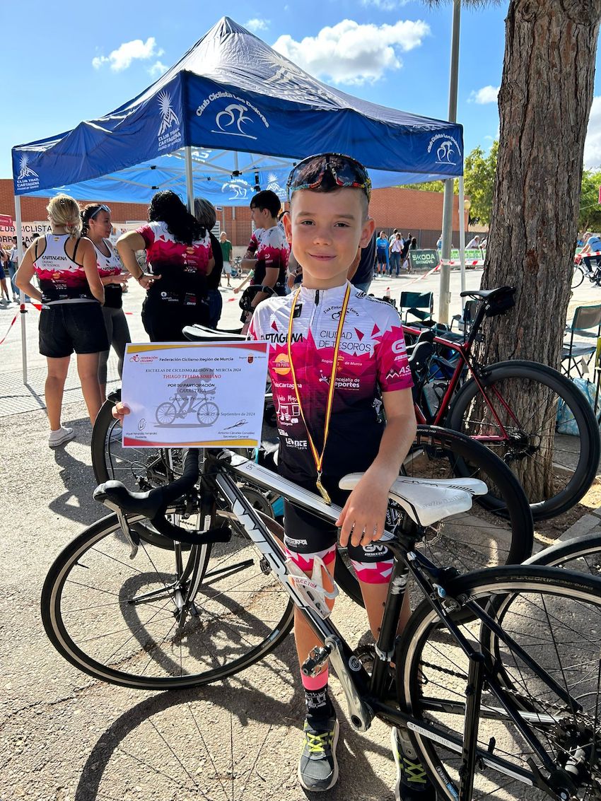 Los portmaneros hermanos Tejada Soriano están comenzado su etapa deportiva con estupendos resultados Thiago, de 8 años de edad ha quedado cuarto clasificado de la categoría promesas de segundo año en el ejercicio 2024 de las escuelas de ciclismo de la Región de Murcia, mientras que Abril, de 6 años, ha sido subcampeona en promesas de primer año de féminas.
